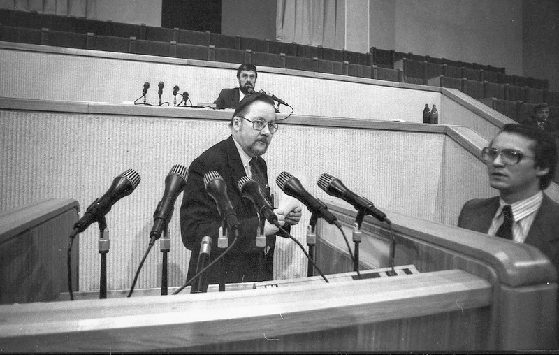 «Тогда мы постоянно сидели в штабе Саюдиса. Я общался с Ландбергисом (Витаутас Ландсбергис, лидер Саюдиса и глава государства после обретения независимости от СССР до 1992 года — прим.), со всеми членами движения. Мы сидели на лестницах, в залах, кабинетах, фотографировали, записывали, писали. Сейчас уже многих из них нет в живых. Ландсбергиса я знал с детства, он был студентом моей бабушки-музыковеда. И других знал, многие были знакомы с моими родителями. Тогда была такая жизнь — мы все жили дружно».