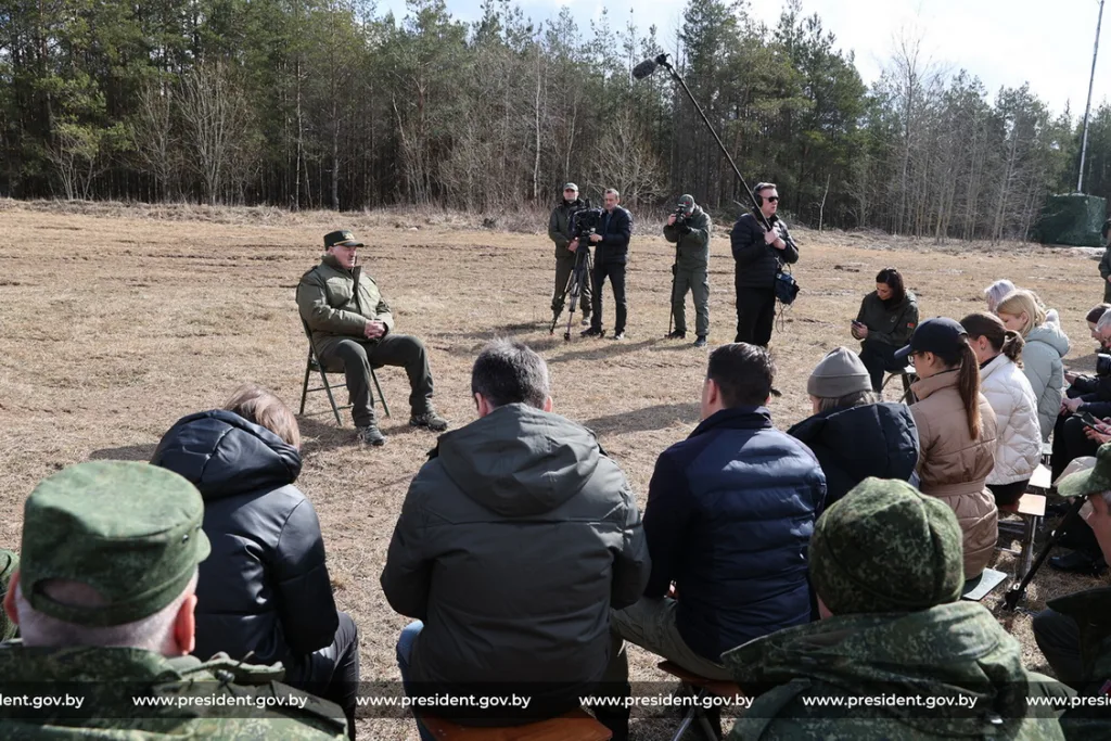 Александр Лукашенко перед представителями государственной прессы. Ошмянский район, 26 марта 2024 года. Фото: пресс-служба Лукашенко
