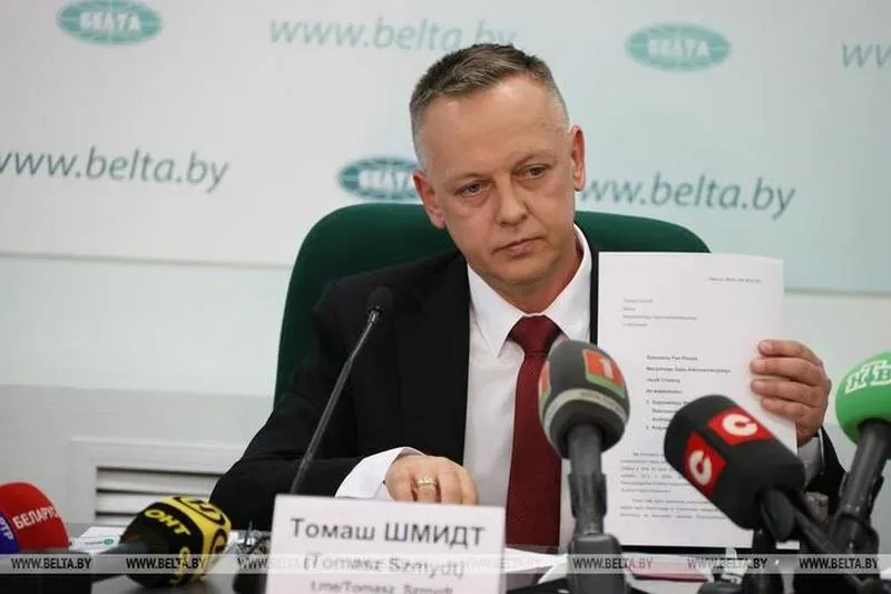 Томаш Шмідт на першай прэс-канферэнцыі ў Мінску 6 траўня 2024 года, фота: БЕЛТА