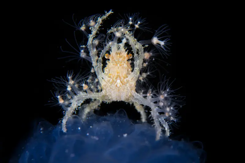 Израильский фотограф Ноам Кортлер запечатлел краба-декоратора, сидящего на морском котике в Комодо (остров в Индонезии).