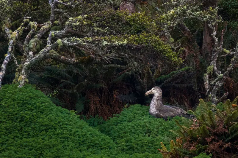 Французский фотограф Самуэль Блох запечатлел северного гигантского буревестника, гнездящегося в лесу на острове Эндерби, Новая Зеландия. Присутствие в густом лесу этой морской птицы, привыкшей к огромным открытым океанам, было редким зрелищем.