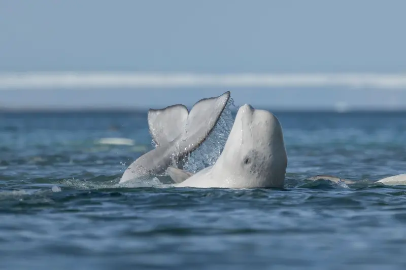 Британско-канадский фотограф Марк Уильямс запечатлел, как белуха отшелушивает свою кожу в Арктике. Сотни белух собираются в этих безопасных водах, вдали от хищных косаток, общаются и сбрасывают старую кожу.