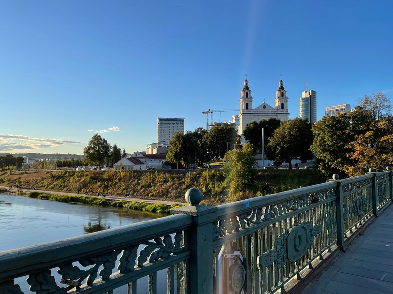 На мосту, что перекинулся через Вилию (по-литовски эта река, протекающая в том числе и в Беларуси, называется Нярис), можно любоваться закатом так же, как в Минске на мосту через Свислочь.