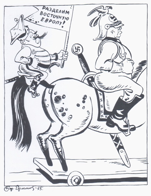 Да пачатку Другой Сусветнай вайны польская тэма, у тым ліку, і ў працах савецкіх карыкатурыстаў адышла на другі план. Такая сітуацыя працягвалася да лета 1939 года. У жніўні ўвесь свет з асцярогай назіраў за збліжэннем Масквы і Берліна. Пры ўсёй паслухмянасці савецкага грамадства, яму трэба было растлумачыць, чаму адбываюцца такія метамарфозы ў савецкай палітыцы і самае галоўнае — супраць каго ўсё гэта робіцца.