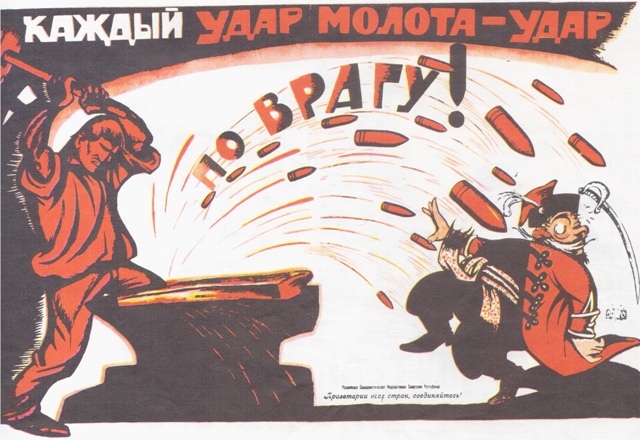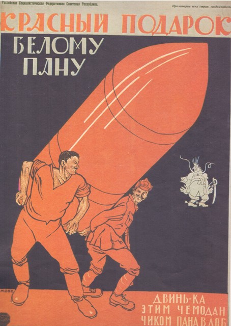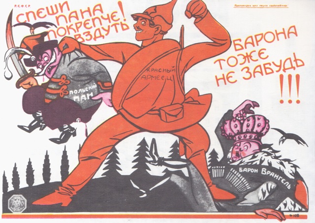 У гэты ж перыяд мастак стварае плакаты “Чырвоны падарунак беламу пану”, якім заклікае хутчэй перамагчы Войска Польскае, адзіную перашкоду для бальшавіцкіх войскаў на шляху ў Еўропу. Іншы савецкі мастак, Віктар Дэні (Дзянісаў) таксама падбадзёрваў чырвонаармейцаў у 1920 г. сваімі малюнкамі “Спеши пана покрепче вздуть, барона тоже не забудь” і “Каждый удар молота — удар по врагу”. На іх прадстаўнікі “першай дзяржавы працоўных і сялян” змагаліся з польскім панам, які ўяўляўся ў выглядзе сярэднявечнага шляхціча ў канфедэратцы і з шабляй.