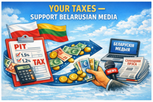 У Літве і Польшчы ўжо можна падаваць падатковую дэкларацыю. Абедзве гэтыя краіны прапануюць важную магчымасць: 1,2–1,5% падаткаў можна накіраваць на дабрачыннасць. Многія беларускія незалежныя СМІ за мяжой прапануюць чытачам падтрымаць іх. БАЖ расказвае, як працуе такая дапамога і чаму гэта важна. Якія медыя ўжо прапанавалі чытачам пералічыць ім частку падаткаў Беларусы і беларускі, працаўладкаваныя ў … Чытаць далей Працэнт ад падаткаў — на падтрымку незалежных СМІ. Як дапамагчы рэдакцыям у Літве і Польшчы?
