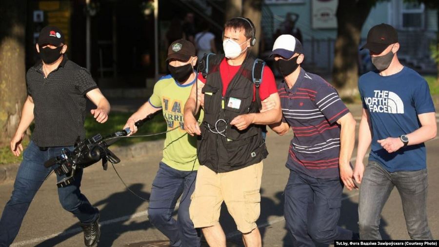 Затрыманьне апэратара Радыё Свабода Андрэя Рабчыка на пікеце ў Менску 19 чэрвеня 2020 году.