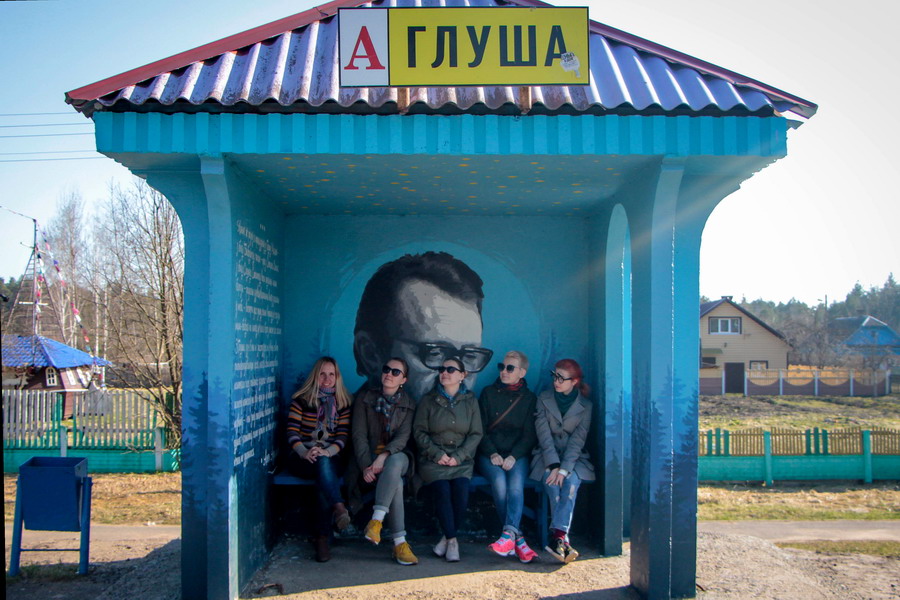 У 2018 годзе сябры ініцыятывы правялі конкурс эскізаў афармлення прыпынка. Найлепшыя ідэі апрацавалі і рэалізавалі мінскія мастакі Аляксандр Благій і Юлія Лазоўская. Цяпер на яшчэ нядаўна пустых сценах прыпынка ў Глушы месцяцца партрэт Адамовіча і ягонае выказванне пра родную вёску з аповесці Vixi.