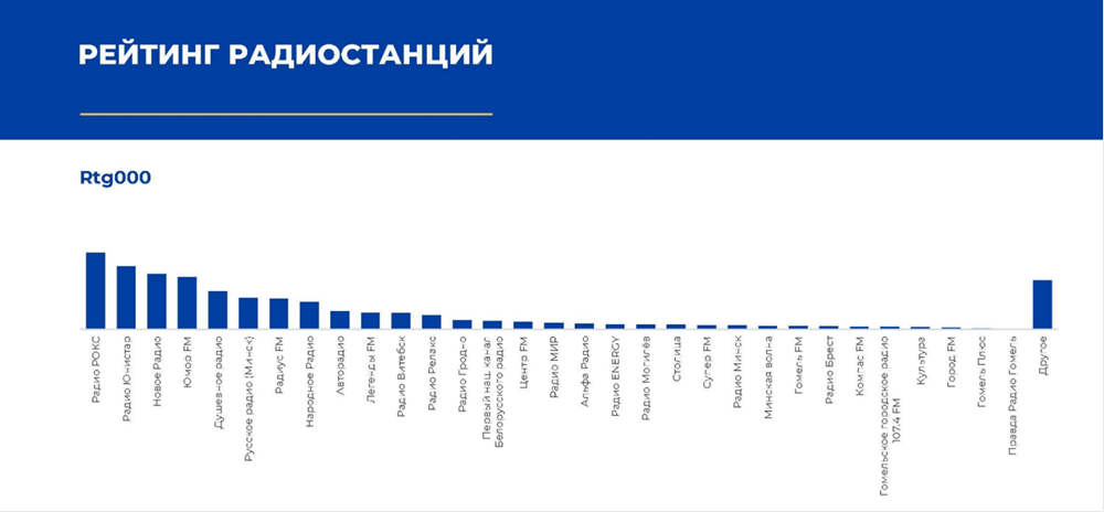 Дадзеныя даследавання радыёслухання ў РБ, ЗАТ «МедыяВымяральнік», ліпень – снежань 2024 г. Крыніца: megapolis-reklama.by