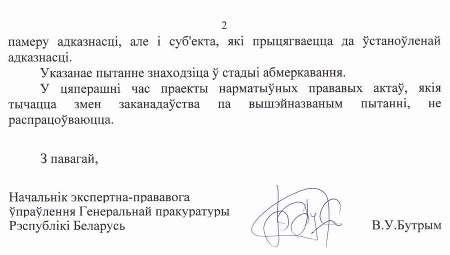 «Таму пытанне аб увядзенні адказнасці за размяшчэнне недакладных звестак у інтэрнэце прадстаўляецца актуальным і знаходзіцца ў стадыі абмеркавання», — паведамляе начальнік экспертна-прававога ўпраўлення Генеральнай пракуратуры Віталь Бутрым.