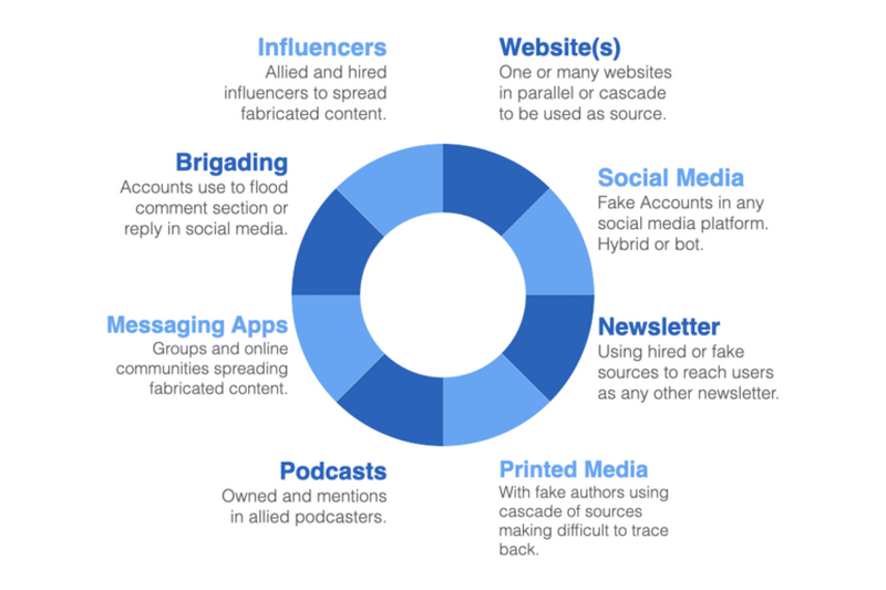 Фабрики троллей создают фальшивые аккаунты в социальных сетях и веб-сайты для распространения своих нарративов. Они ведут кампании на конкретных платформах и в сообществах для усиления этих нарративов. Во многом они действуют как любое агентство цифрового маркетинга, генерируя сообщения и контент и стратегически ориентируя их на разные каналы для достижения своих целей.