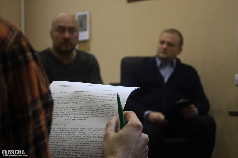 “Беларускі Хельсінкскі Камітэт актыўна прасоўвае неабходнасць прыняцця антыдыскымінацыйнага заканадаўства ў Беларусі, і рэкамендацыя пра тое, што Беларусі неабходны гэты ўсеаб’емны закон, у якім будуць пералічаныя асноўныя антыдыскрымінацыйныя паняцці, знайшлі адлюстраванне ў заключных заўвагах Камітэта. І мы спадзяемся, што ўрад прыме гэты закон”, — падкрэсліў ён.