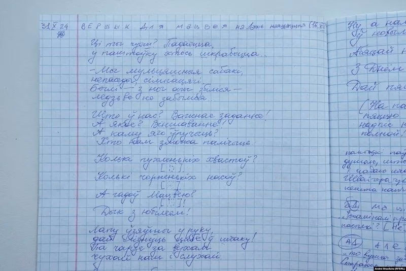Верш-загадка, які Андрэй напісаў для сына Мацвея, але яго не дала адправіць турэмная цэнзура. Фота: Andrei Shauliuha / Радыё Свабода