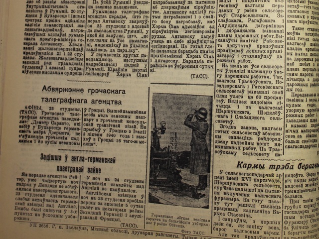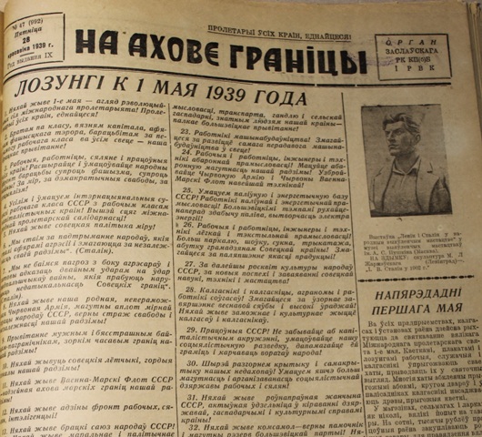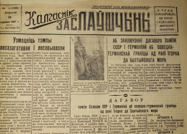 У верасні 1939 года Заходняя Беларусь была далучана да БССР. “Небяспечнага” польскага суседа ўжо не было, але старую мяжу працягвалі трымаць. А на Захадзе “першая краіна працоўных і сялян” ужо мяжавала з нацысцкай Германіяй. У студзені 1941 года газета “Калгаснік Заслаўшчыны” публікавала заметкі з назвамі “Аб заключэнні дагавора паміж СССР і Германіяй аб савецка-германскай граніцы ад ракі Ігорка да Балтыйскага мора” і “Камюніке аб заключэнні гаспадарчага пагаднення паміж СССР і Германіяй”. Да нападу Гітлера на Савецкі Саюз заставалася меньш за паўгода. Увогуле варта адзначыць, што ў гэты час заслаўскія газеты амаль нічым не адрозніваліся ад цэнтральных савецкіх выданняў, кшталту “Правда” і “Известия”. Мясцовыя навіны “выштурхоўваліся” на апошнія старонкі перыёдыкі, а на перадавіцах друкаваліся паведамленні “агульнасаюзнага значэння”.