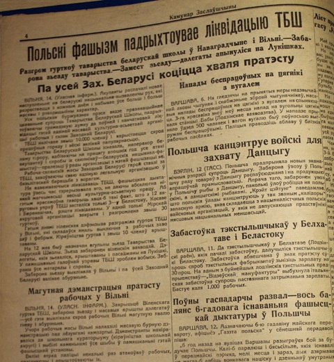 У іншым нумары газета “Камунар Заслаўшчыны” інфармавала пра тое, што “польскі фашызм рыхтуе ліквідацыю Таварыства беларускай школы”.