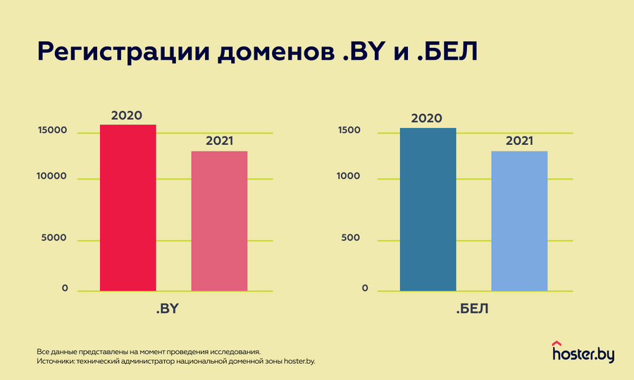 За первую половину 2021 года в зонах .BY и .БЕЛ зарегистрировано 14 540 доменов, или около 87 имен в сутки. Это на 20% меньше, чем за аналогичный период 2020-го.