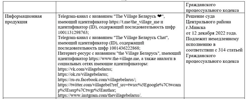 Як вынікае з паведамлення на сайце Міністэрства інфармацыі Беларусі, дзе акумулююцца справаздачы пра змаганне з “нелаяльнымі” да рэжыму медыя і “шкоднымі” акаўнтамі ў сацсетках, адпаведнае рашэнне прыняў суд Цэнтральнага раёна Мінска 12 снежня.