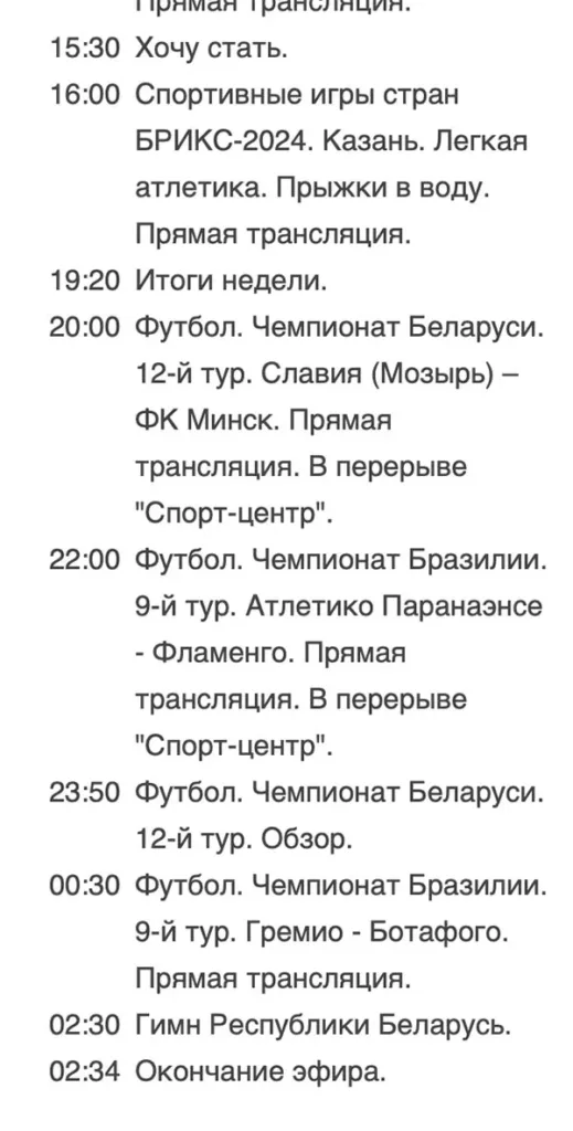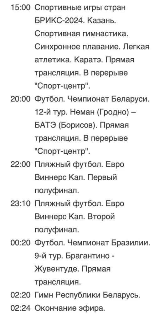 Замест чэмпіянату Еўропы будуць паказваць гульні БРІКС* з Казані, чэмпіянат Беларусі па футболе (што ў прынцыпе няблага), пляжны футбол і нават чэмпіянат Бразіліі.