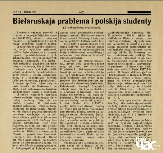 Але гэткае дапушчэньне памылковае. Новаўступаючая на вышэйшыя школы беларуская моладзь не зьяўляецца такой адасобленай. Мы маем багатую гісторыю беларускага студэнцкага жыцьця, маем свае славутыя традыцыі, сьветлыя ідэалы. Маем свае студэнцкія арганізацыі: Беларускі Студэнцкі Саюз, Таварыства Прыяцеляў “Беларусаведы”. Беларускія студэнцкія арганізацыі вядомыя ўжо на міжнароднай арэне студэнцкага жыцьця.