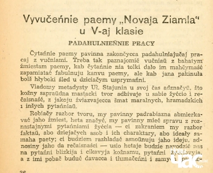 Вывучэньне нашай роднай беларускай мовы і літаратуры, якую палякі ў былой Польшчы не дапускалі наагул у школы, а бальшавікі няміласэрна калечылі, павінна заняць асабліва пачэснае мейсца ў школе. А мова нашая сапраўды багатая і мілагучная.