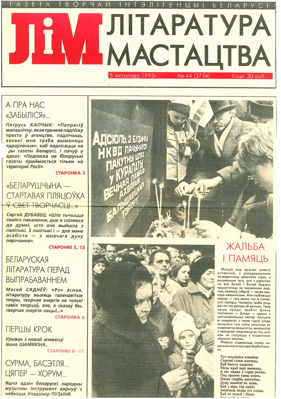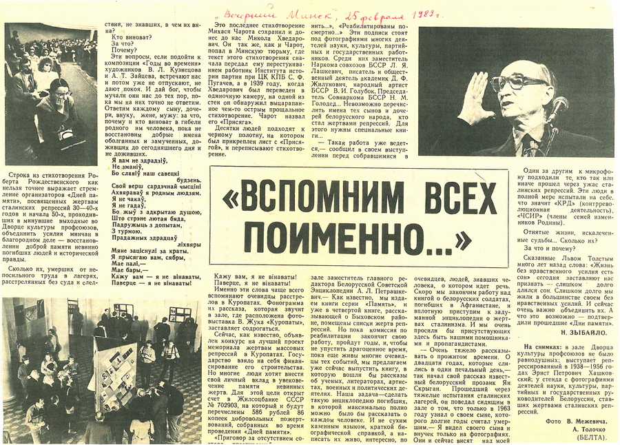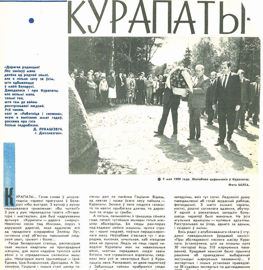 «Курапаты… Гэтае слова ў мінулагоднім чэрвені прагучала ў Беларусі нібы выстрал. З вуснаў у вусны перадавалася трывожнае: «Вы чыталі?» З рук у рукі пераходзіла газета «Літаратура і мастацтва».