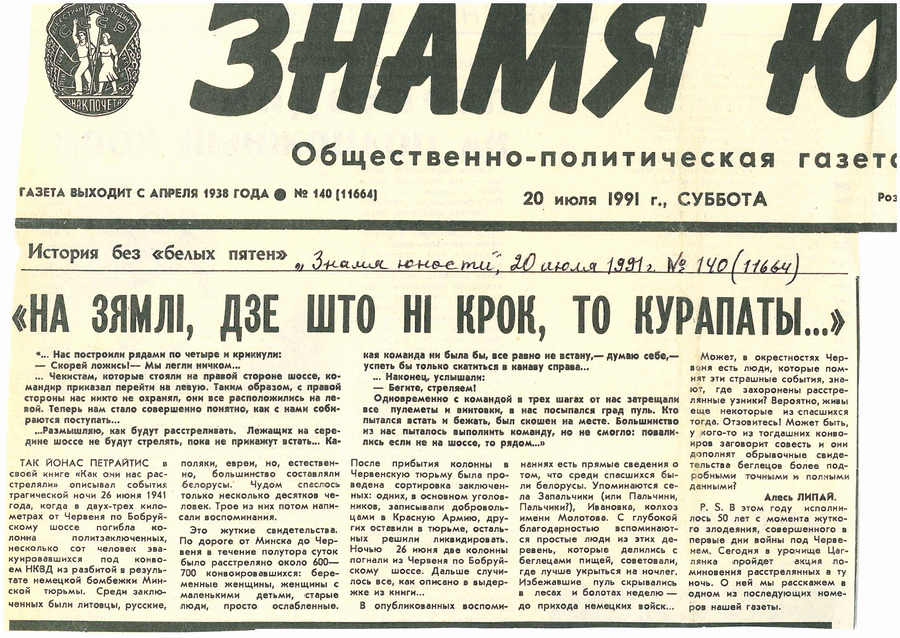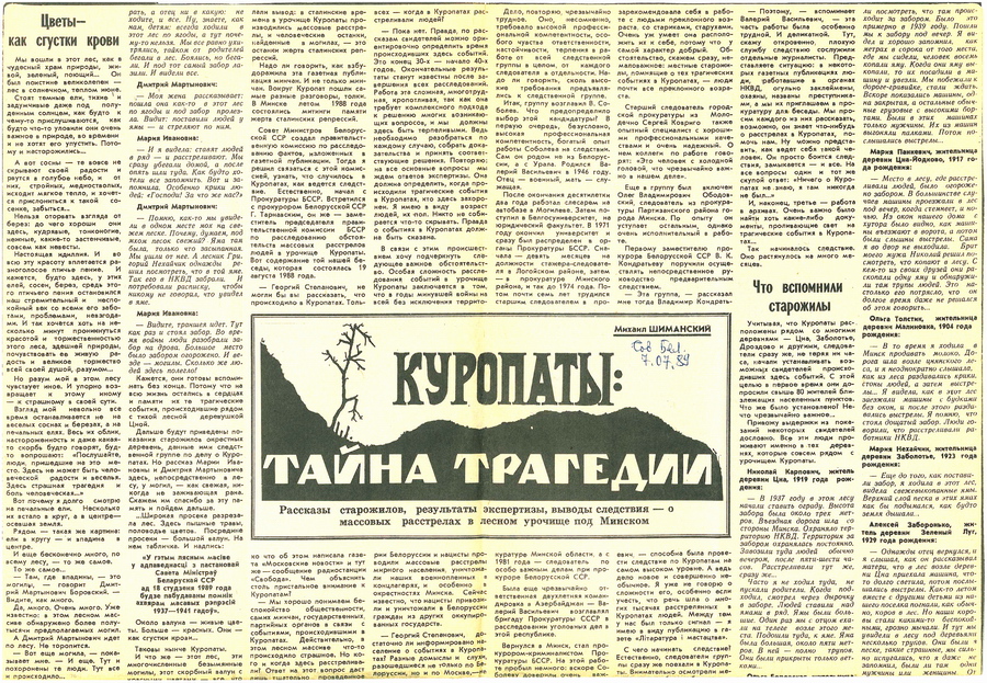 Беларусы даведаліся пра Курапаты, калі ў газеце “Літаратура і мастацтва” выйшаў артыкул Зянона Пазняка і Яўгена Шмыгалёва “Курапаты — дарога смерці”. Матэрыял, які нечакана прапусціла цэнзура, стаў сапраўднай інфармацыйнай бомбай.