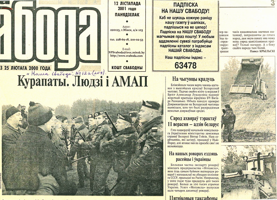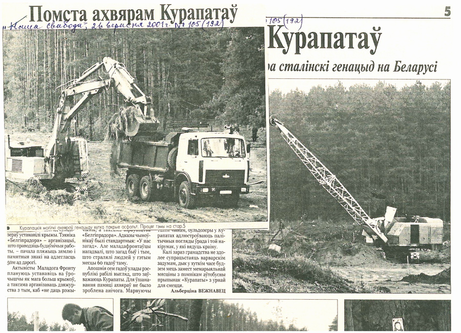 З артыкула Зянона Пазняка і Яўгена Шмыгалёва «Курапаты – дарога смерці»: