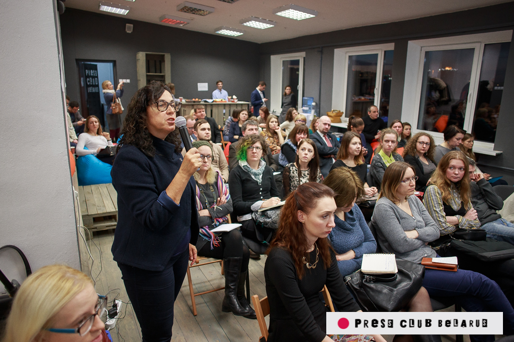 Сустрэча з Мэйв Шэрлаў адбылася на новай пляцоўцы “Прэс-клуба Беларусь”, у будынку на вул. Харужай, 3 у Мінску. Па словах Юліі Слуцкай, якая адкрыла паседжанне, “Прэс-клуб” збіраецца выкарыстоўваць гэтае памяшканне “па максімуму”. “Тут будуць адбывацца прэс-канферэнцыі, круглыя сталы, дыскусіі. Таксама будзе бібліятэка для журналістаў, запрацуе невялікае памяшканне для адукацыйных праектаў на 15–20 чалавек”, – сказала Юлія Слуцкая.