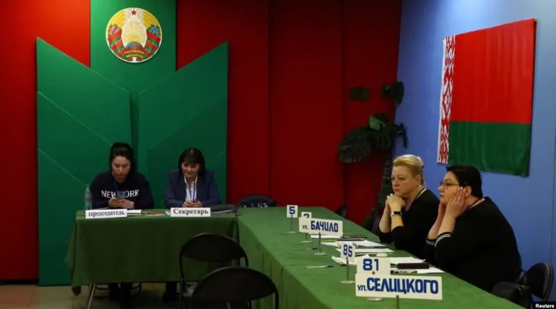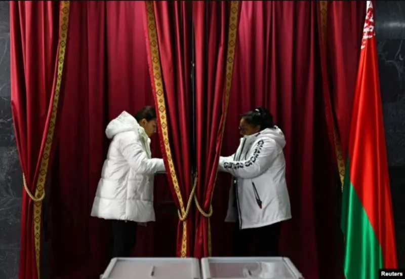 Сябры ўчастковай выбарчай камісіі ў Менску падчас датэрміновага галасаваньня. 25 студзеня 2025 году. Фота Reuters