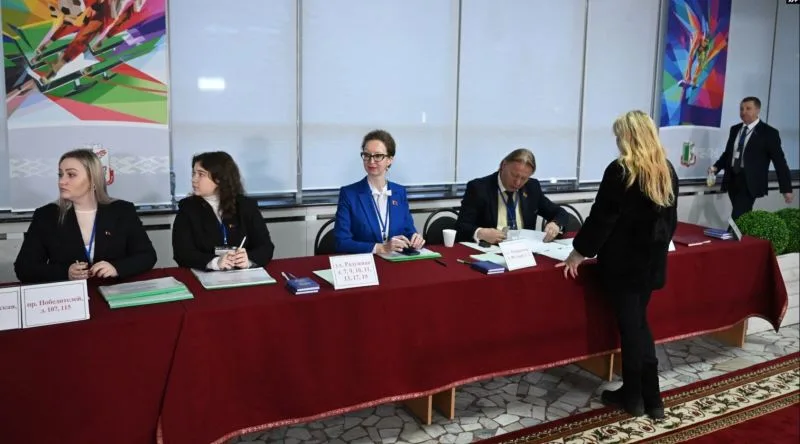 Сябры ўчастковай выбарчай камісіі ў Менску. 26 студзеня 2025 году. Фота AFP