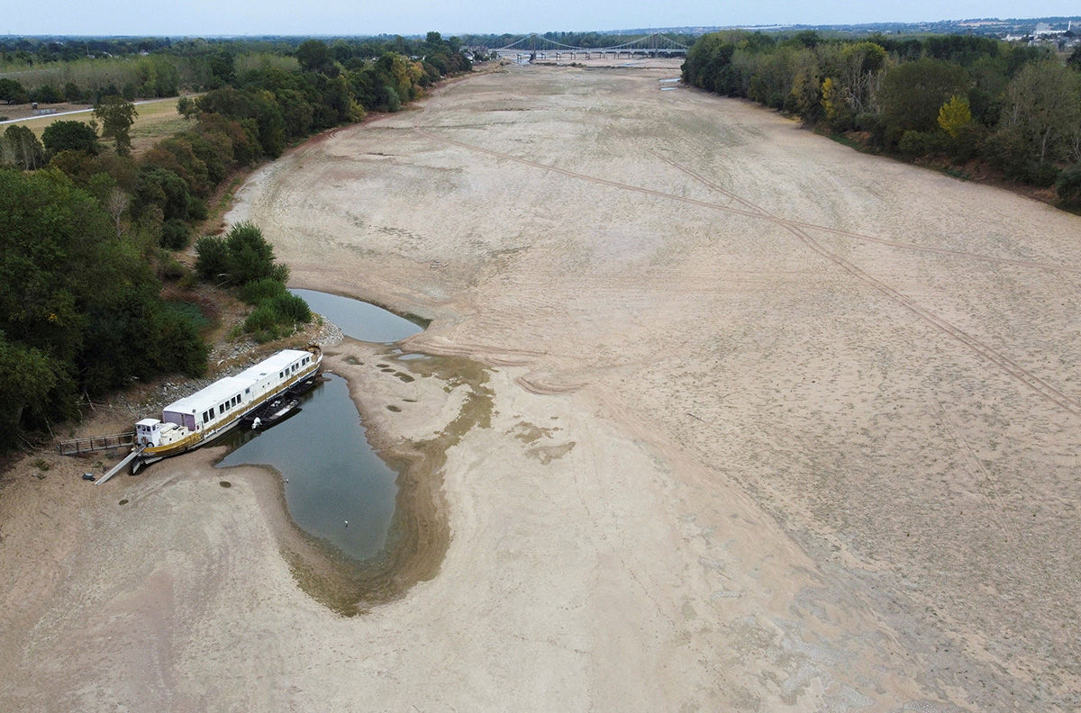 Рукав высохшей реки Луары во время сильнейшей засухи, обрушившейся на Францию, 16 августа 2022 года. Аномальная жара, установившаяся летом этого года в Европе, осушила русла Рейна, Дуная и многих других рек в Европе. Фото: Reuters