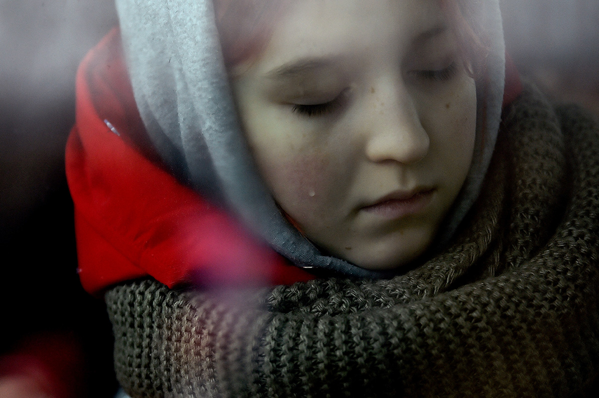 Слеза катится по щеке девочки, которая на автобусе пересекает границу Украины и Румынии в первые дни российско-украинской войны, Румыния, 16 марта 2022 года. С начала войны России против Украины миллионы украинских беженцев пересекли границу с Евросоюзом, который создал систему поддержки для людей, которые укрываются на его территории. Фото: Reuters