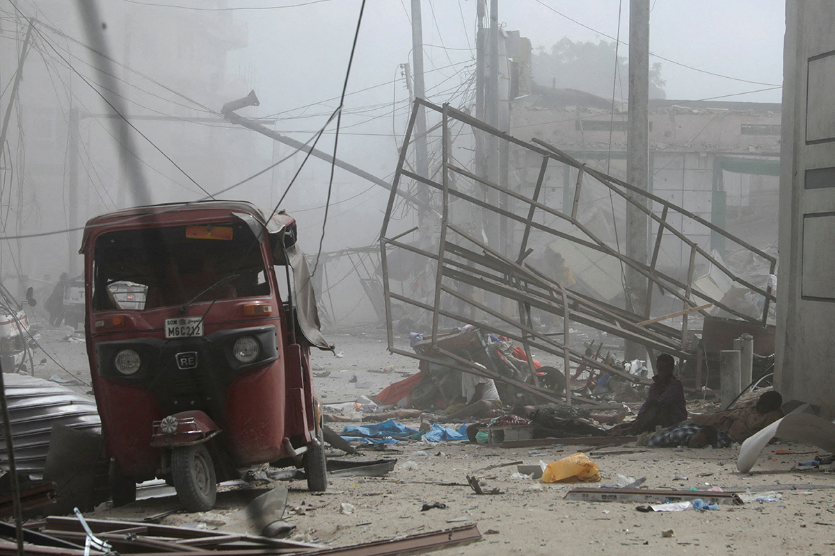 Место террористического акта возле здания Министерства образования на улице К5 в Могадишо, Сомали, 29 октября 2022 года. В тот день там произошли два подрыва автомобилей террористами-смертниками. Погибли не менее 100 человек, пострадали не менее 300. Фото: Reuters