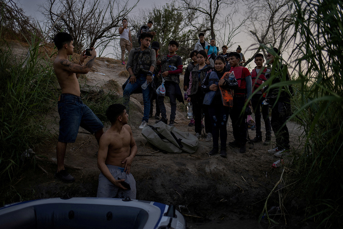 Группа мигрантов фотографируется с контрабандистами перед тем, как последние на плоту помогут им пересечь Рио-Гранде и попасть из Мексики в Соединенные Штаты, Мексика, 13 июля 2022 года. К южной границе США уже полгода прибывает рекордное число мигрантов из Центральной и Южной Америки в поисках лучшей жизни. Фото: Reuters.