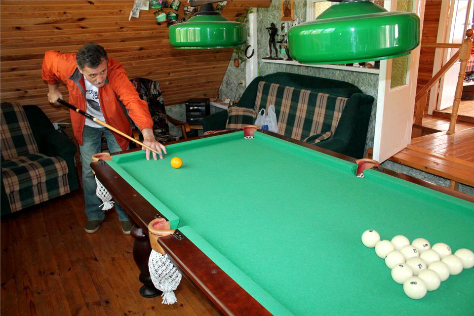 На ўтульнай кухні спадарыня Мар’яна гатуе вячэру. Падымаемся на паверх вышэй. У самым вялікім пакоі – більярдны стол. На паліцах ізноў “прывітанні з мінуўшчыны”: старыя фотаапараты, кінакамеры, радыёпрымачы, фотаздымкі пачатку мінулага стагоддзя і нават кравецкая машынка Zinger.