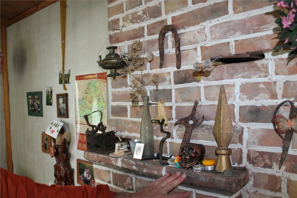 – Гэтая печка, напрыклад, зробленая з камянёў Брэсцкай крэпасці. Справа ў тым, што мой брат працаваў будаўніком у Брэсце, і яны разбіралі нейкі будынак каля тэатру, які раней быў прызыўным пунктам. Ён гэтую цэглу захаваў і прывёз мне, а мы тут ужо пабудавалі з яе печку.