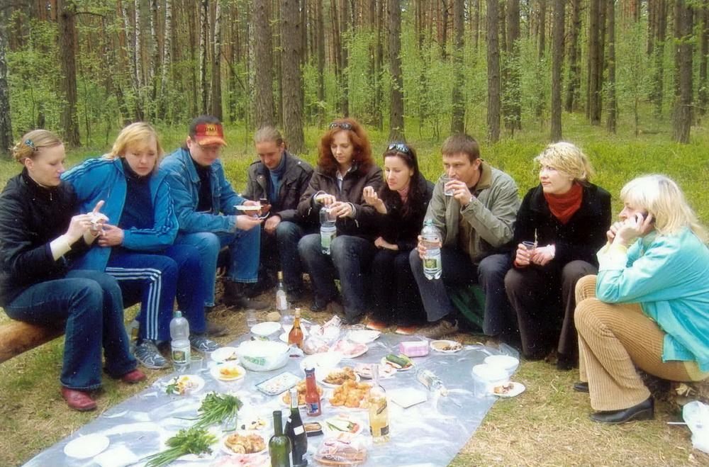 Таццяна Мельнічук: А ніколькі не падколвалі! Усе разумеюць, што так і павінна быць! (усміхаецца) Скажу больш, што ўжо так гадочкаў з трыццаці Дзень радыё адзначаецца на якой-небудзь паляне, куды збіраецца ўся радыйная журналісцкая братыя. Гэтым годам нас было чалавек пад трыццаць. Нашы БАЖаўцы і “маладзёжка”, Жэнька Агурцоў, Лёня Міндлін, Лёнечка Свірыдаў прыехаў з Варшавы – дарэчы, адзін з заснавальнікаў БАЖа. А былі часы, калі мы збіраліся на ўскрайку палігона ва Уруччы. Здаралася, што мы ідзем з лесу назад у цемры ўжо – а нам насустрач натоўп. І нехта кажа: “Ну ўсё, мясцовыя. Мы крыху п’яныя, яны, напэўна ж, нецвярозыя – зараз бойка будзе…” Не, не бойка – гэта ідуць беларускія музыкі, Лёнечка Вольскі, Кася Камоцкая. Яны проста крыху прыпазніліся. Вось такі атрымліваецца Дзень радыё! Бастунец мне з гэтай нагоды нават фільм падарыў, які так і называецца.