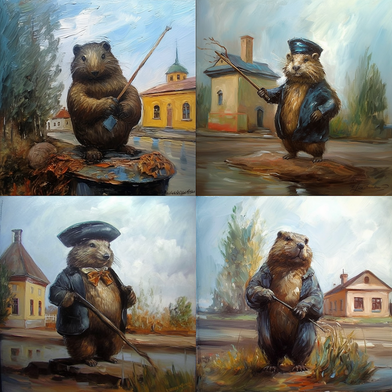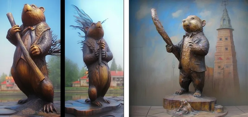 Сайт 1387.io пры дапамозе гэтага інструмента стварыў цэлую галерэю баброў у стылі сусветных і мясцовых мастакоў – то-бок пры дапамозе штучнага інтэлекту спалучыў вядомыя мастацкія творы з гарадскім сімвалам.