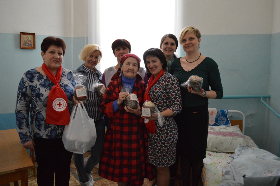 Сябры Лунінецкай філіі ГА “БАЖ” разам з прадстаўнікамі Чырвонага Крыжа наведалі пажылых людзей, якія будуць сустракаць праваслаўнае свята ў шпіталі сястрынскага догляду.