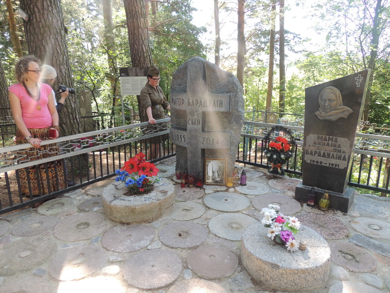 Наступнае месца, якое мы сабраліся наведаць, — Ушацкія могілкі. Дабрацца да патрэбнай нам магілы лёгка, шлях пазначаны невялікімі таблічкамі. Здаецца, зусім нядаўна бачыла фота, дзе паэт з унучкай Дамінікай стаіць каля надмагілля сваёй маці, а цяпер гляджу на суседні валун з надпісам: «Рыгор Барадулін. Сын. 1935 – 2014», каля якога ляжаць свечкі і кветкі.