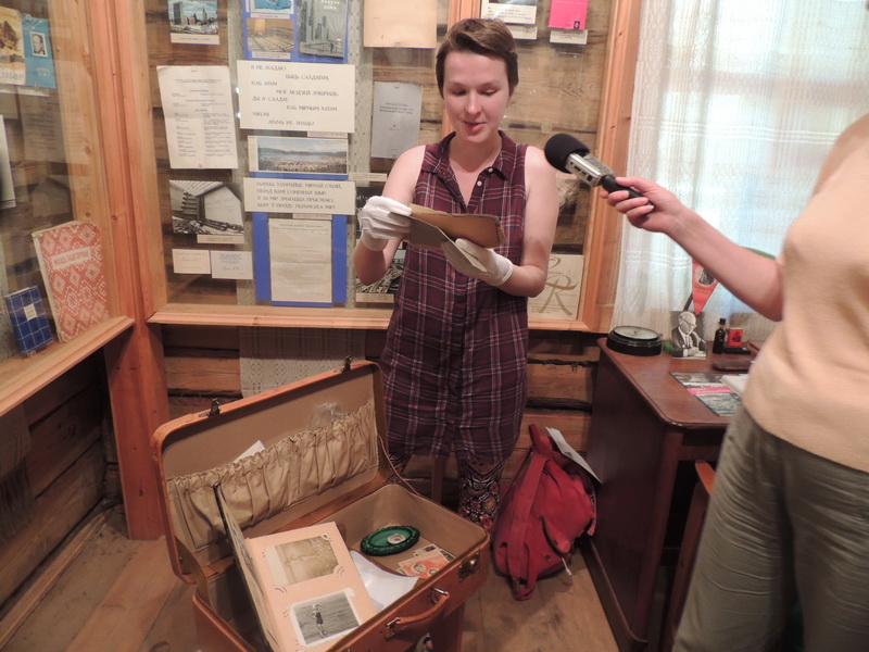 У кутку аднаго з пакояў ўжо стаіць той самы чамадан з фотаздымкамі і асабістымі рэчамі. Прэзентуюць падарунак маладыя работніцы музея. Яны акуратна паказваюць усім ахвочым змесціва валізкі — без пальчатак дакранацца не варта, экспанаты далікатныя.