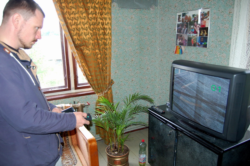 На першым паверсе у нас стаіць газавы кацёл, тут таксама кухня і гасцёўня, – кажа Аляксей і наладжвае “Белсат” на тэлевізары.