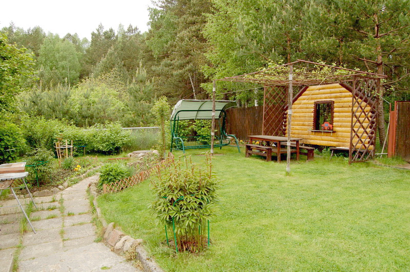 Нікуды не падзелася і сельскагаспадарчая частка – клубніцы, цыбуля, кроп, гуркі, памідоры – каб далёка не ездзіць па дробязі. Займаецца гэтым пераважна бабуля Аляксея. Зазіраем таксама на дзіцячую пляцоўку, а затым скіроўваемся ў дом.