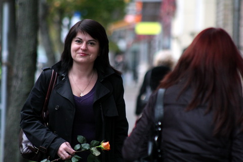 Перш чым гутарыць, мы троху пафоткаліся на дварэ. Наталля глянула здымкі і сказала: «Калі вы не супраць, я скарыстаю адзін з іх на сайце, бо якраз напісала тут адзін злосны тэксцік».