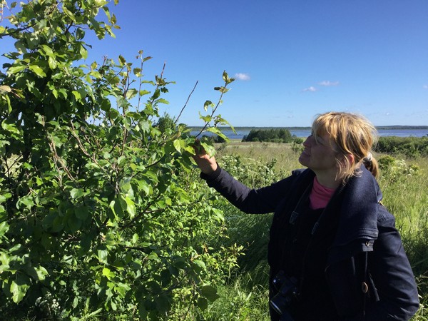 «Кизильник черноплодный» — Наталья рассматривала куст, о котором рассказывал директор заказника. Оказывается, на острове есть растения, не типичные для Беларуси. Алтай, средняя полоса России, горы — вот их дом. И только на острове Освейского озера они чувствуют себя прекрасно. Семена, по словам Романюка, могли занести птицы, здесь их много…