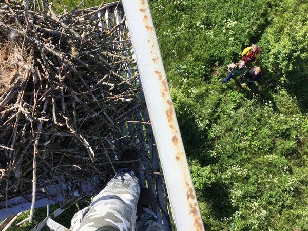 С наблюдательной вышки открывался вид на озеро и «большую землю». Красиво и жутко одновременно — на смотровой площадке располагалось большое гнездо из толстых веток, для ног еле хватало места по краям, приходилось крепко держаться руками. А когда дул ветер, казалось, что вышка качается и вот-вот упадет.
