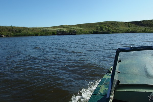 Дорога на моторке — глоток счастья. Забрызганная водой, Виктория улыбалась — ей тоже нравится свобода, которая особенно остро чувствуется здесь, на краю земли под пронзительно голубым небом. А еще корреспондент экологического портала ожидала продолжения программы — уборку территории, для которой мы привезли из Минска пакеты для мусора.