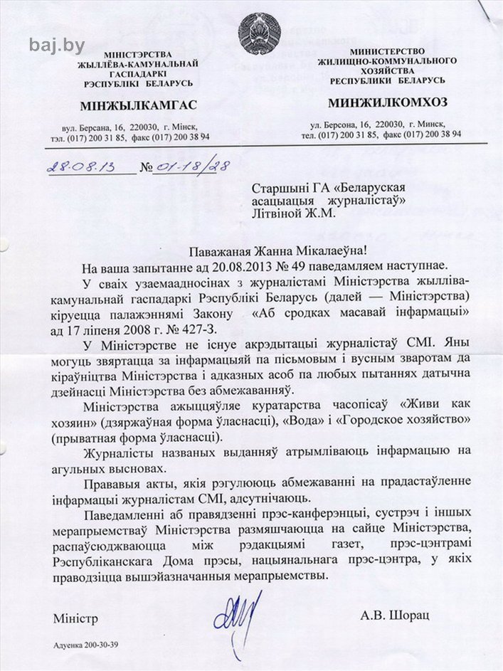 А вось у Міністэрстве жыллёва-камунальнай гаспадаркі журналісты атрымліваюць інфармацыю “на агульных высновах”.