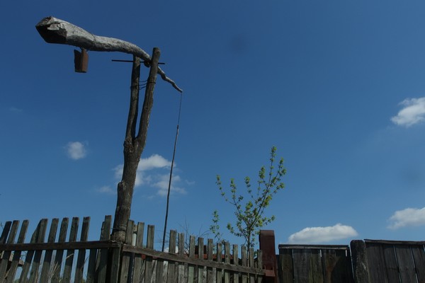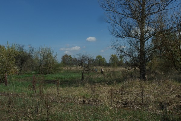 Прощаемся с хозяевами, идем дальше. Деревня как деревня, только по дороге то разрушенный фундамент, то поломанная ограда попадаются. Полкилометра пути — и на поле с бурьяном, наконец, замечаем одинокую фигурку. Когда-то здесь был огород.