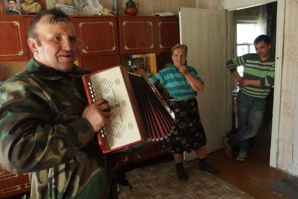Впрочем, у работящей семьи и своих дел невпроворот. Евгений Петрович долго отказывался сыграть на баяне: «руки болят, надо постоянно работать. Сажалка, копалка, комбайн, — себе огород делаю и людям помогаю, техники-то у них няма».